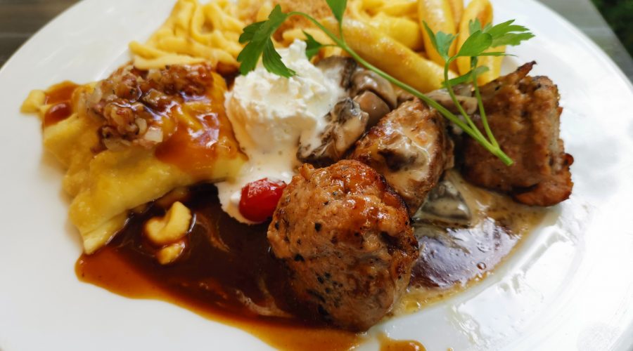 Spätzle mit Sauce, Schweine-Filet, Schupfnudle und a Maultasch ???